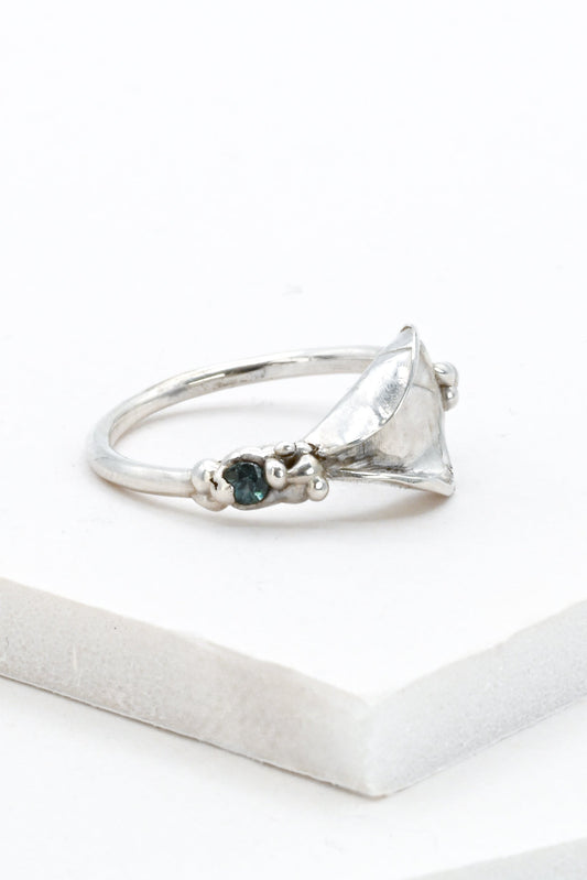 "Gaia" Impurity Ring: Sterling Silver Vulva Ring with Teal Blue Sapphire
