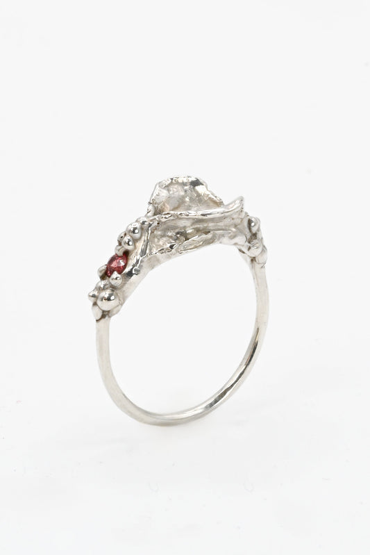 "Brigid" Impurity Ring: Sterling Silver Vulva Ring with Red Sapphire