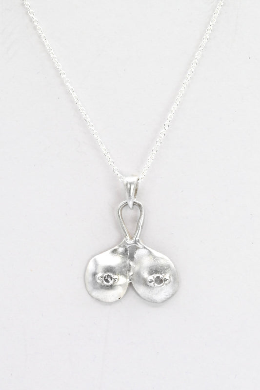 "Godiva" Necklace: Silver Boobs Pendant with White Sapphires