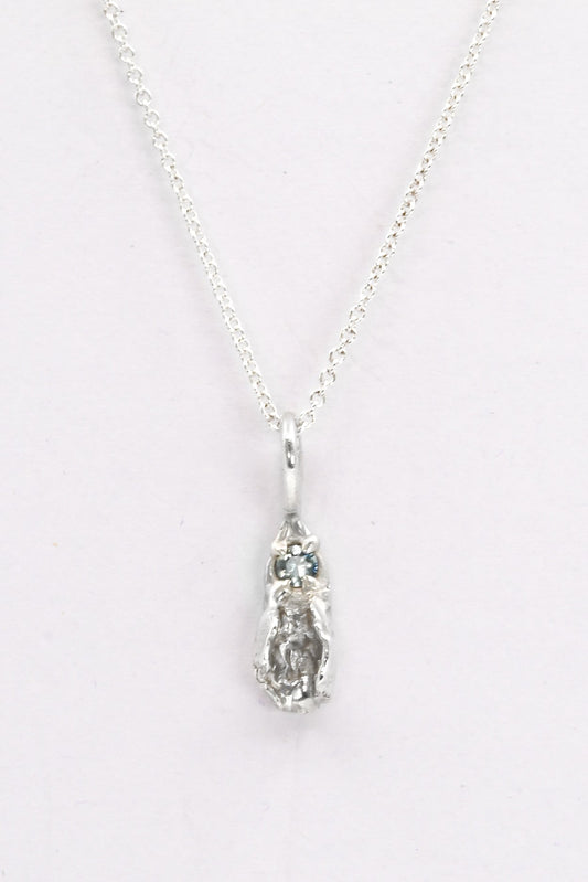 "Freyja" Necklace: Small Silver Vulva Pendant with Light Blue Sapphire