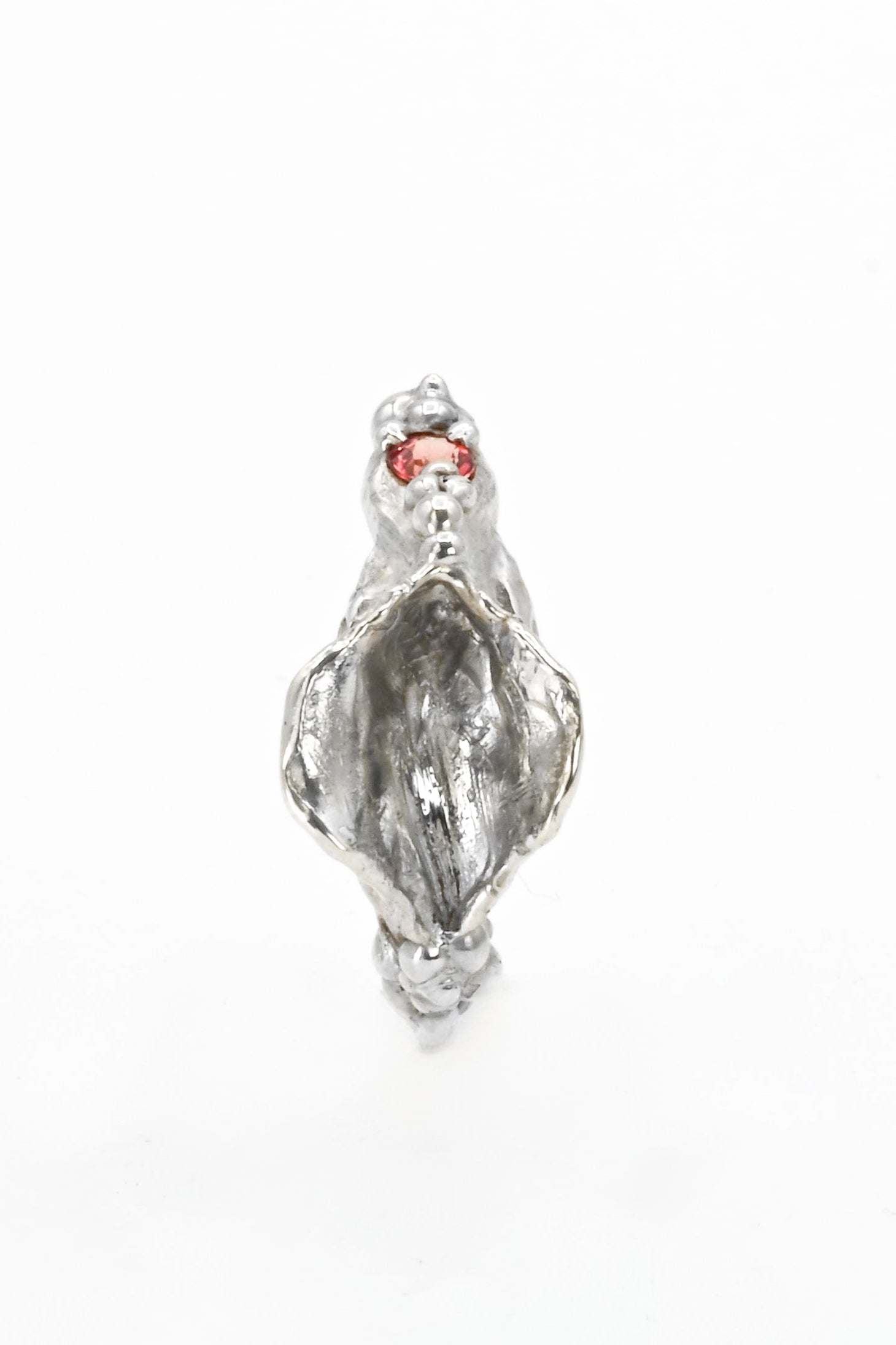 "Brigid" Impurity Ring: Sterling Silver Vulva Ring with Red Sapphire